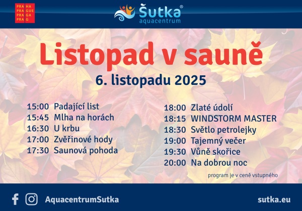 Saunové ceremoniály v Aquacentru Šutka spojují blahodárné účinky saunování, relaxaci a odpočinek společně s výjimečným zážitkem a nevšední show. Zážitkovému saunování bude v Aquacentru Šutka vyčleněna vždy jedna sauna a jedna pára.