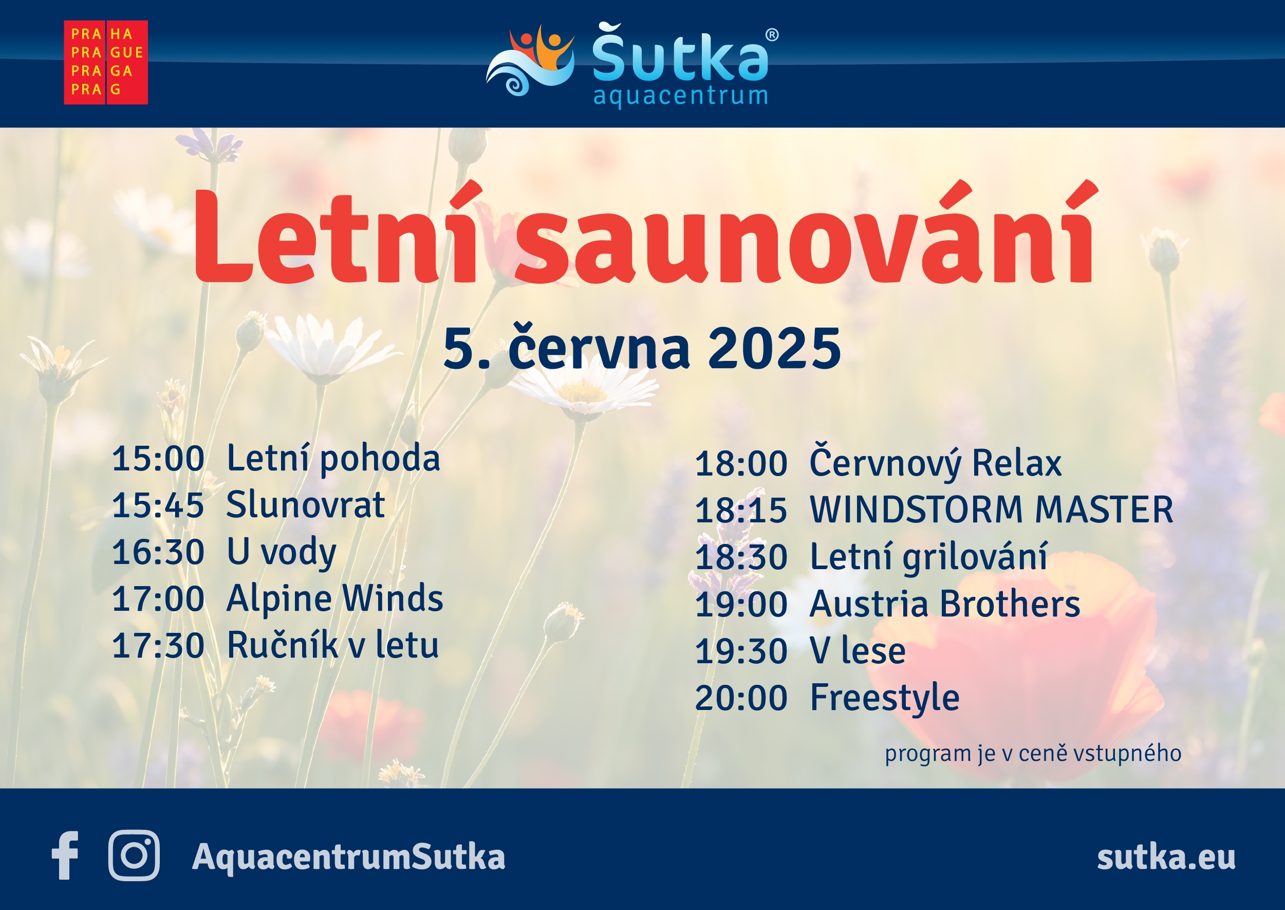 Saunové ceremoniály v Aquacentru Šutka spojují blahodárné účinky saunování, relaxaci a odpočinek společně s výjimečným zážitkem a nevšední show. Zážitkovému saunování bude v Aquacentru Šutka vyčleněna vždy jedna sauna a jedna pára. Ostatní je funkční dle běžného provozu. Veškerý program saunových ceremoniálů je zahrnut do běžné ceny vstupného. Saunování bude probíhat v čase od 15:00 do 20:00.