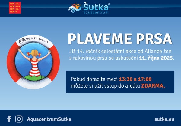 Na Šutku míří další ročník akce Plaveme prsa! Uskuteční se 11. října 2025 - a pokud dorazíte mezi 13:30 a 17:00, můžete si užít vstup do areálu ZDARMA!