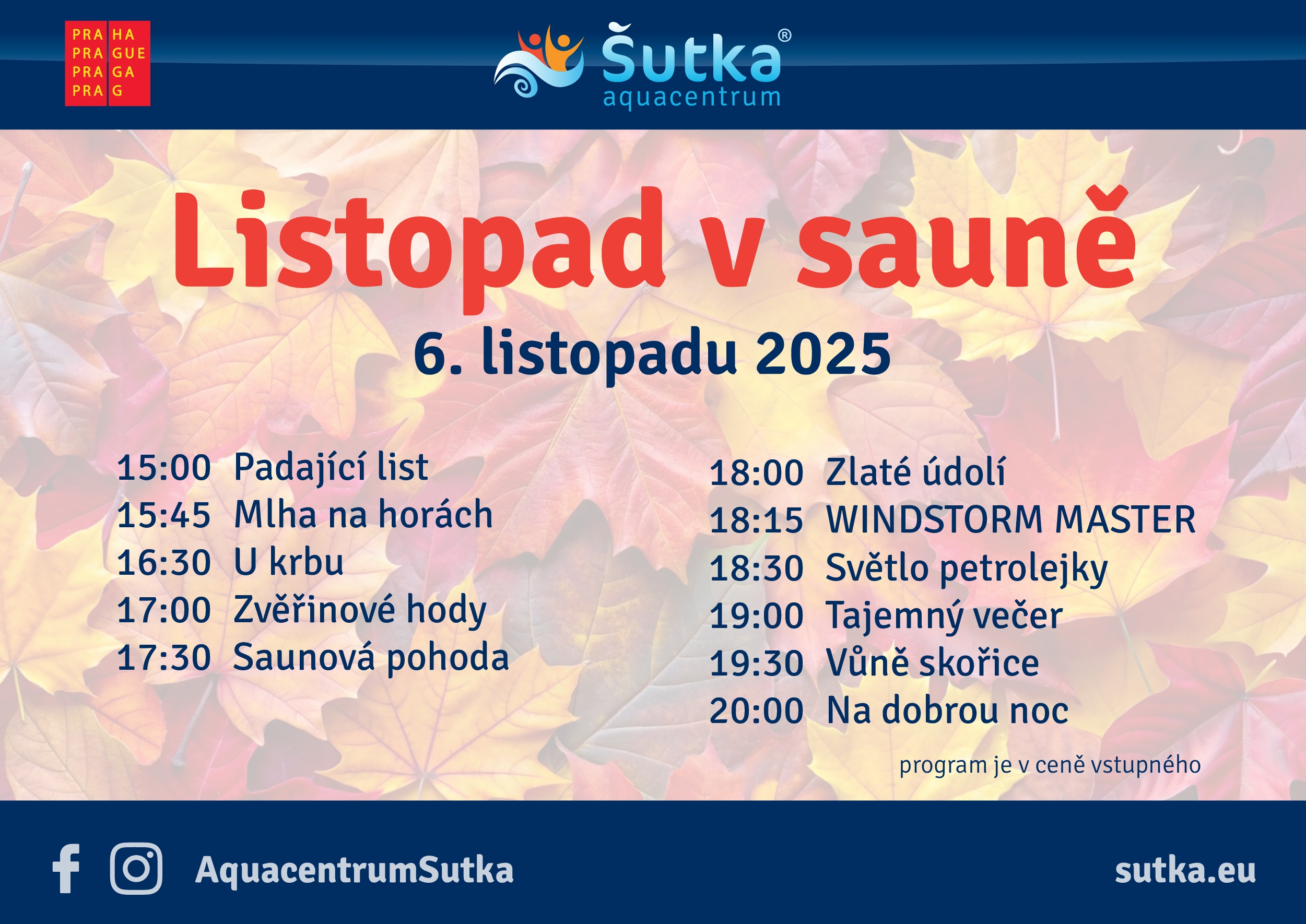 Saunové ceremoniály v Aquacentru Šutka spojují blahodárné účinky saunování, relaxaci a odpočinek společně s výjimečným zážitkem a nevšední show. Zážitkovému saunování bude v Aquacentru Šutka vyčleněna vždy jedna sauna a jedna pára. Ostatní je funkční dle běžného provozu. Veškerý program saunových ceremoniálů je zahrnut do běžné ceny vstupného. Saunování bude probíhat v čase od 15:00 do 20:00.