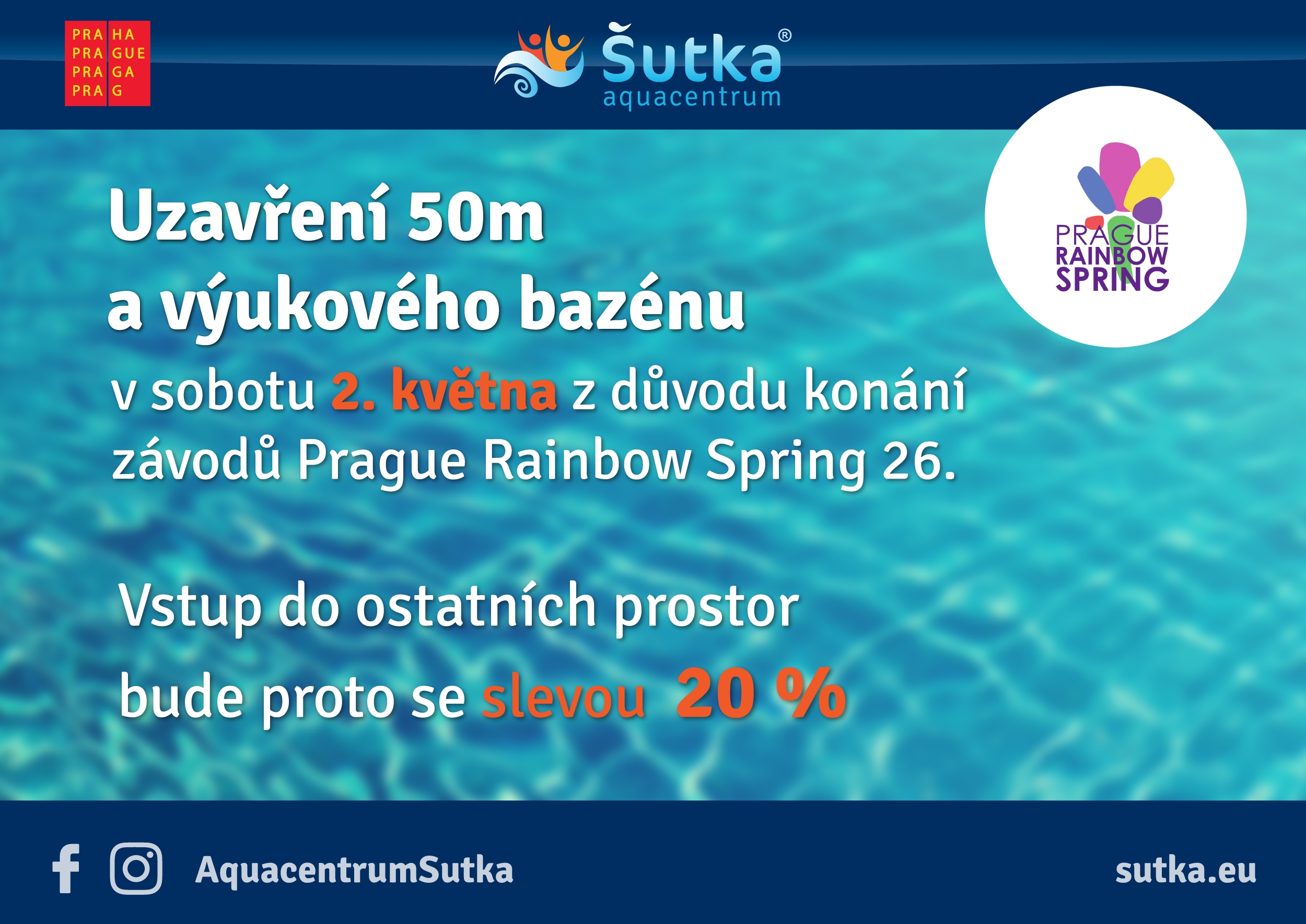 v sobotu 2. května bude 50m bazén a výukový bazén po celý den uzavřen z důvodu konání závodů Prague Rainbow Spring ’26.